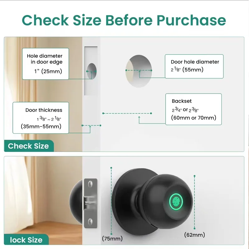 Das Schloss ist für Türen mit einer Stärke von 35 bis 55 mm geeignet und passt nahtlos an Stahl-, Holz-, Messing- und Edelstahl-Türen sowie anderen Türtypen. Der eingebaute Lithium-Ionen-Akku hält 8 bis 12 Monate im Standby-Modus und kann bei schwacher Batterie über den USB Typ-C-Anschluss schnell wieder aufgeladen werden.