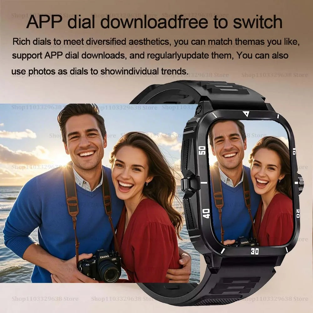 Diese moderne Sport-Smartwatch für Herren überzeugt durch ein großes 1,96-Zoll-HD-TFT-Display mit einer Auflösung von 240x286 Pixeln und bietet zahlreiche smarte Funktionen für den aktiven Alltag. Die Uhr ist mit Android- und iOS-Geräten kompatibel und unterstützt Bluetooth 5.1 für kabellose Telefonate und Benachrichtigungen direkt am Handgelenk.