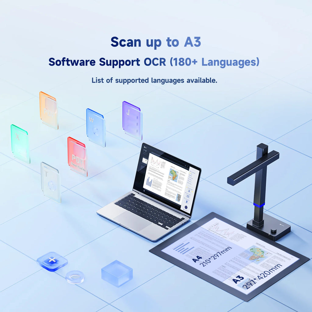 Tragbarer A3 Buch- und Dokumentenscanner mit 13MP & OCR