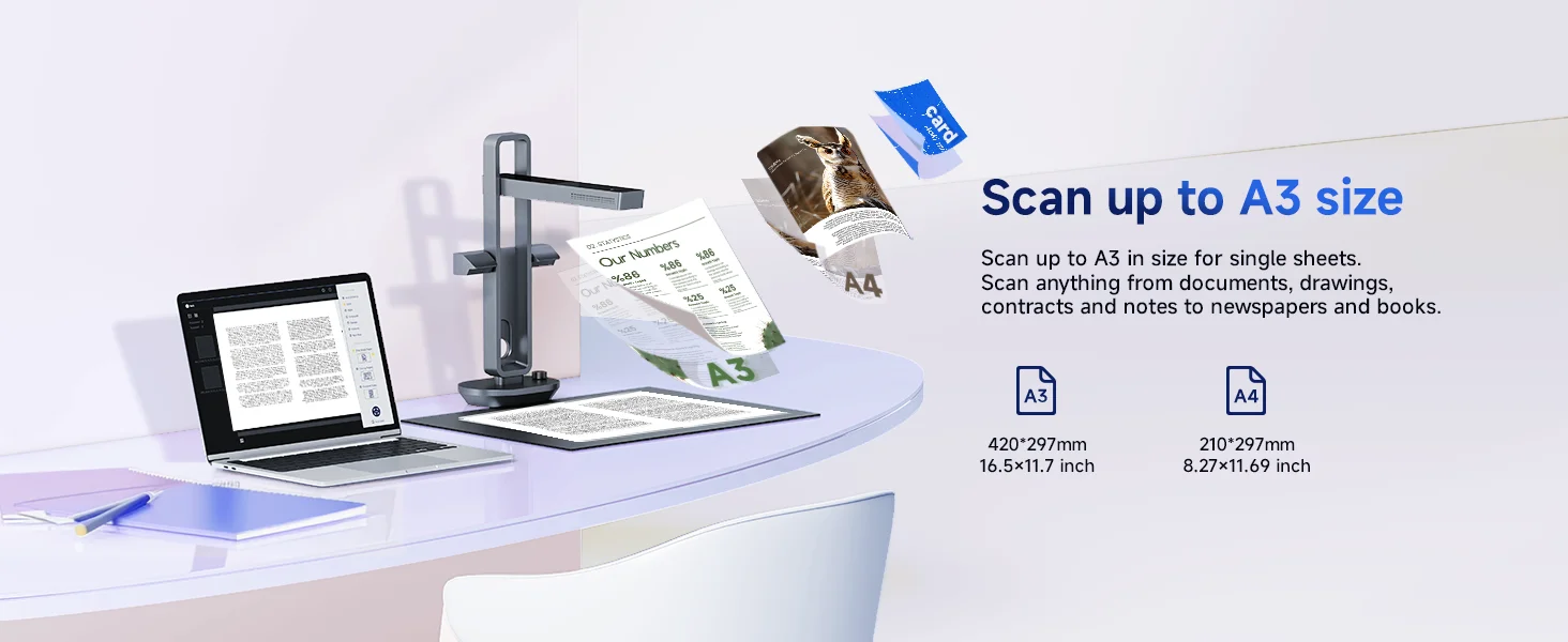 Tragbarer A3 Dokumentenscanner mit 14MP Kamera und 180 Sprachen OCR