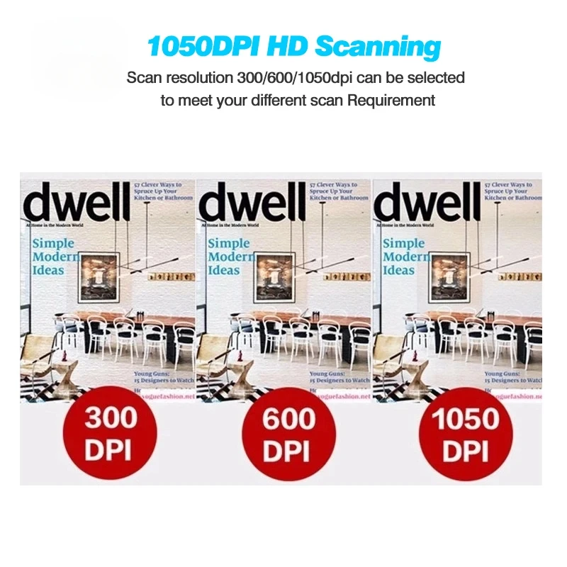 Der tragbare iScan-Dokumenten-Fotoscanner bietet eine hohe Scanqualität mit einer Auflösung von bis zu 1050 DPI und eignet sich ideal für den mobilen Einsatz im Büro, Studium oder unterwegs. Ausgestattet mit einem HD-LCD-Display können Sie gescannte Bilder sofort überprüfen. Das innovative Doppelrollen- und Buchranddesign sorgt für verzerrungsfreie Scans und verhindert den Verlust von Bildinhalten. Der Scanner unterstützt Speicherkarten bis zu 32 GB, sodass große Mengen an Dokumenten problemlos gespeichert werden können. Die integrierte wiederaufladbare Lithiumbatterie macht den Scanner umweltfreundlich und bietet eine lange Laufzeit. Dank seiner kompakten und leichten Bauweise ist der Scanner einfach zu transportieren.