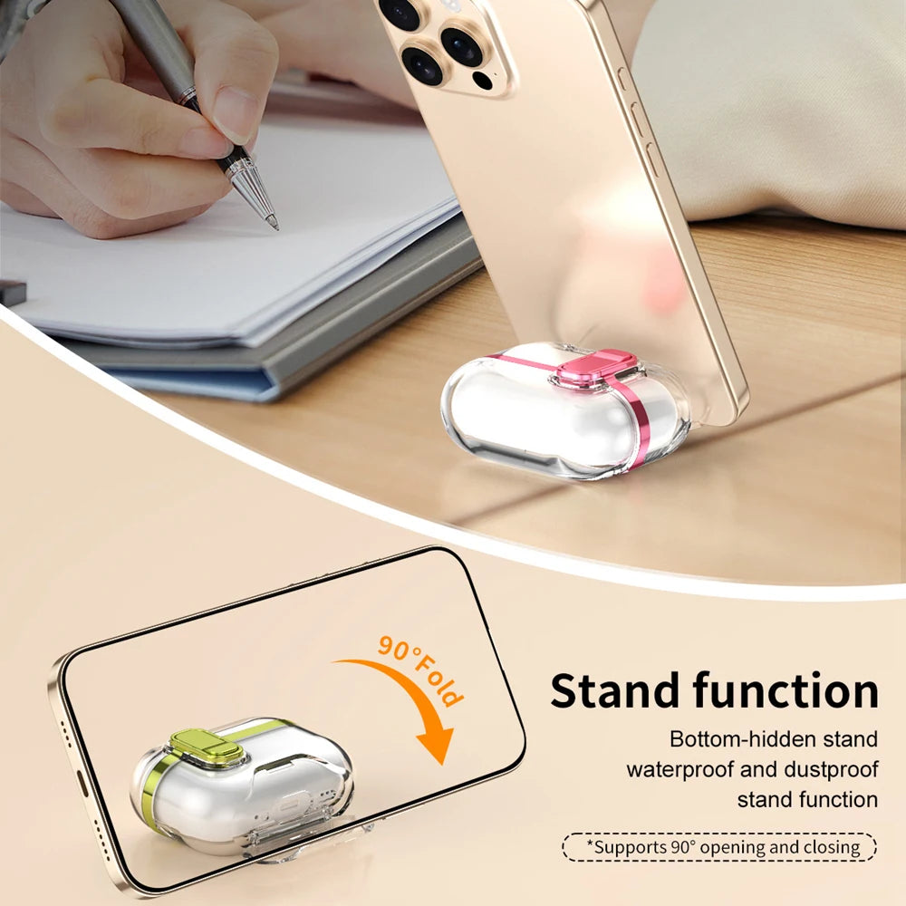 Die Hülle verfügt über einen praktischen Haken, der als Telefonständer oder zur Befestigung an Taschen und Rucksäcken genutzt werden kann. Das flexible Material erleichtert das Anbringen und Entfernen der Hülle, während die präzisen Aussparungen den einfachen Zugriff auf den Ladeanschluss ermöglichen und das kabellose Laden unterstützen.