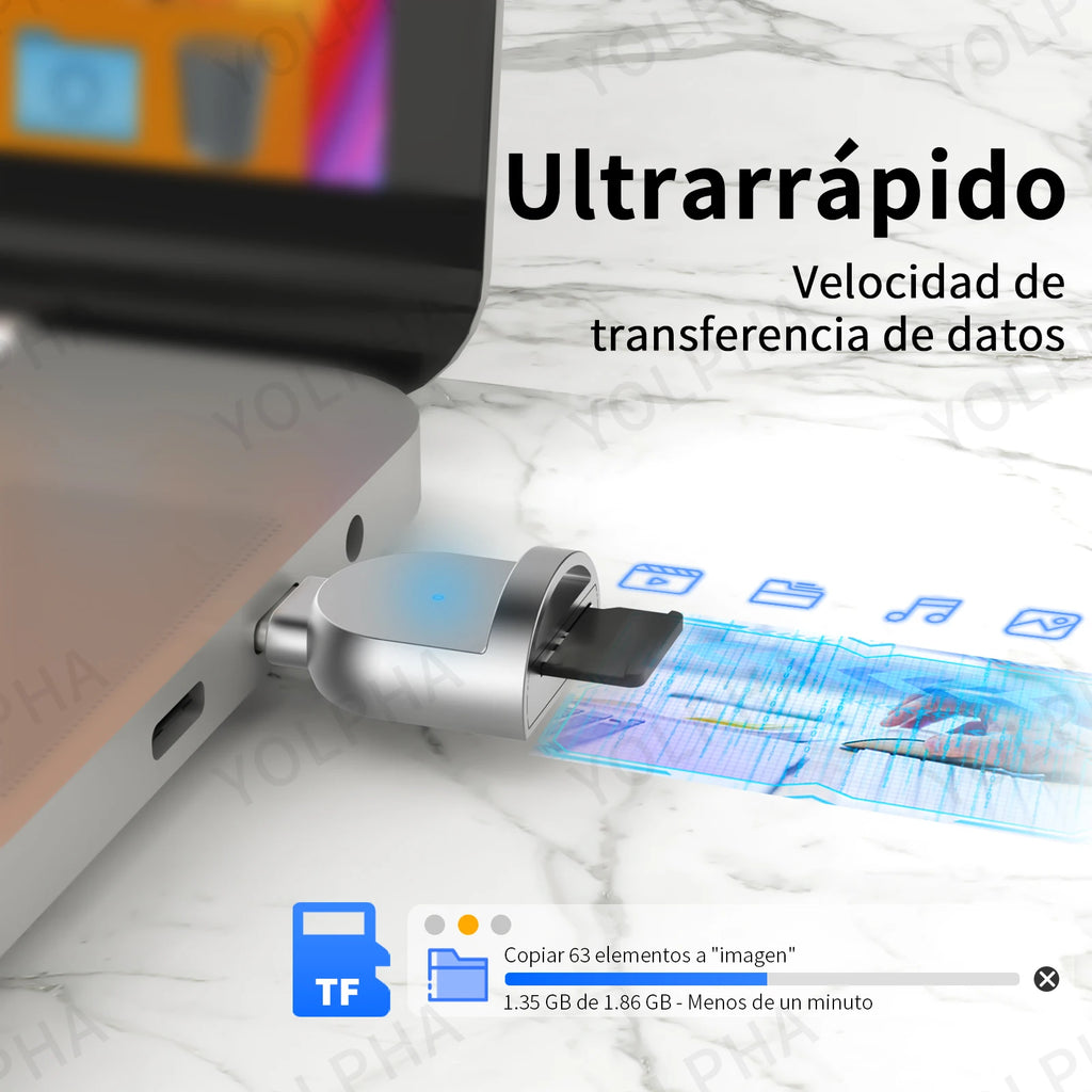 Durch sein kompaktes Design ist er ideal für unterwegs, zu Hause oder im Büro. Er ist robust, leicht und passt in jede Tasche, sodass Sie Ihre Daten jederzeit schnell und sicher übertragen können.