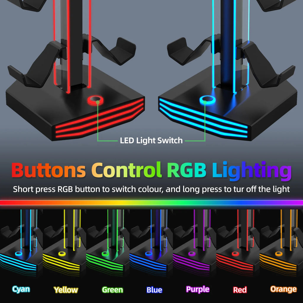 RGB Gaming Kopfhörer- und Controllerständer mit 9 Lichtmodi und USB Ports