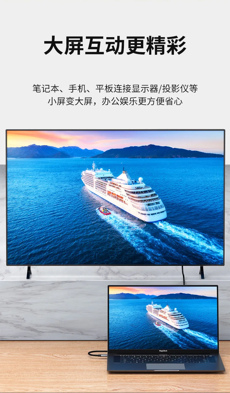 Dieses USB-C zu HDMI-Kabel ermöglicht eine hochwertige und stabile Übertragung von Bild und Ton zwischen kompatiblen Geräten wie Laptops, Smartphones, Monitoren, Fernsehern und Projektoren. Es unterstützt HDMI 2.1 und überträgt Videos mit einer Auflösung von bis zu 8K bei 60 Hz sowie 4K bei 60 Hz, was für gestochen scharfe Bilder und flüssige Wiedergabe sorgt.