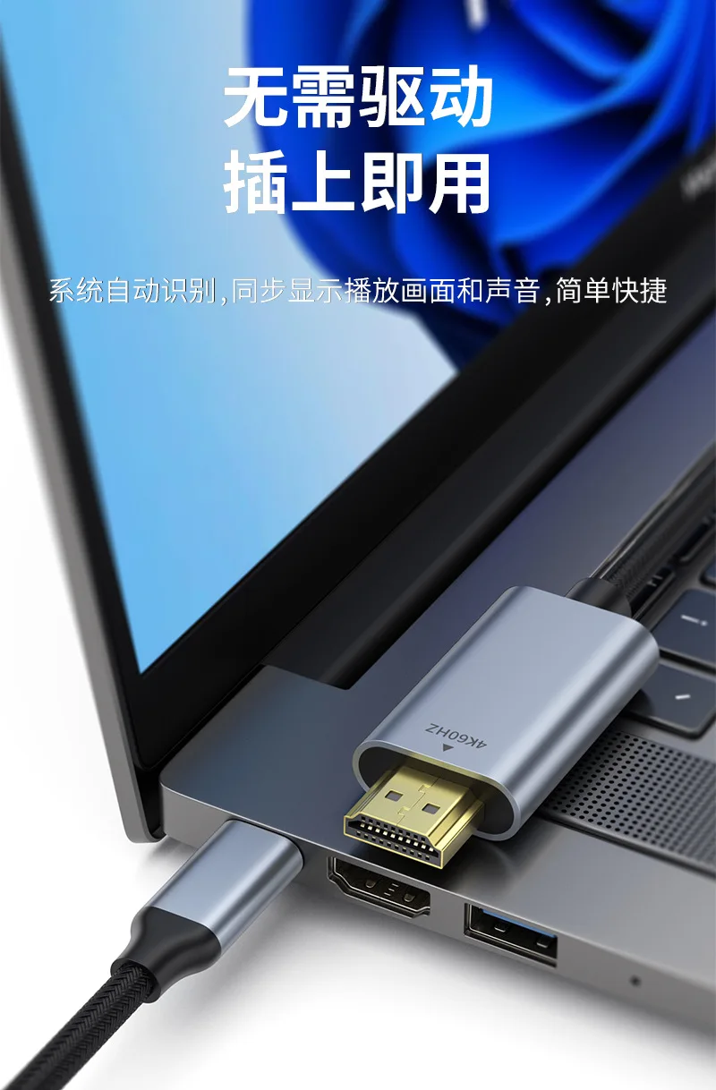 Das Kabel verfügt über eine robuste Zopf-Abschirmung, die elektromagnetische Störungen effektiv verhindert und somit eine stabile Signalqualität garantiert. Der USB-C-Stecker ist mit modernen Computern und Smartphones kompatibel, während der HDMI-Stecker in die meisten Fernseher, Monitore und Projektoren passt. Beide Stecker sind stecker-zu-stecker ausgelegt, was eine einfache und sichere Verbindung ermöglicht.