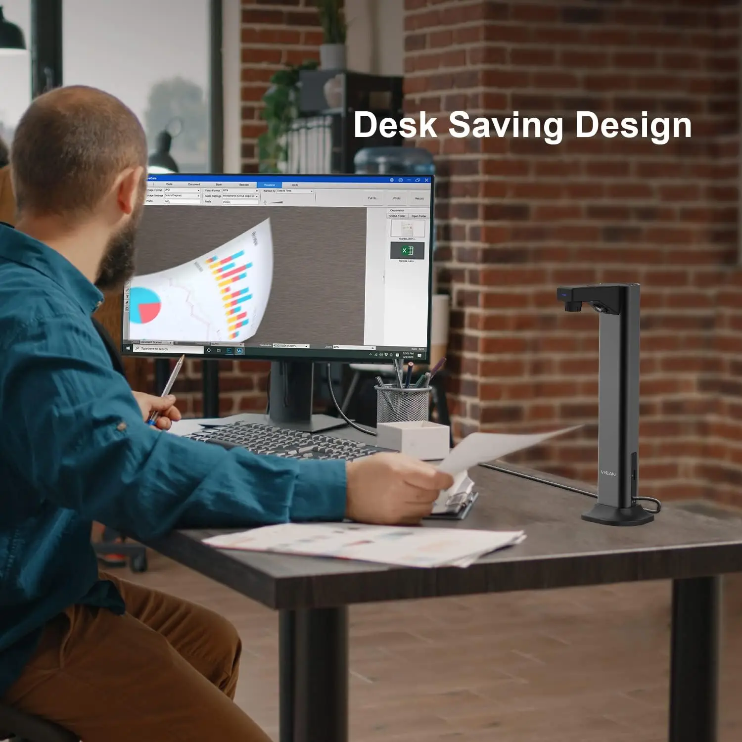 Der Dokumentenscanner bietet eine hervorragende Scanqualität mit einem 13 Megapixel Superhochauflösungssensor (4208 x 3206 Pixel) und einem einzigartigen Kurzarmdesign, das es ermöglicht, selbst feinste Details präzise einzufangen. Die Scanbreite beträgt bis zu A3-Format, was das Scannen großer Dokumente und Bücher problemlos möglich macht.