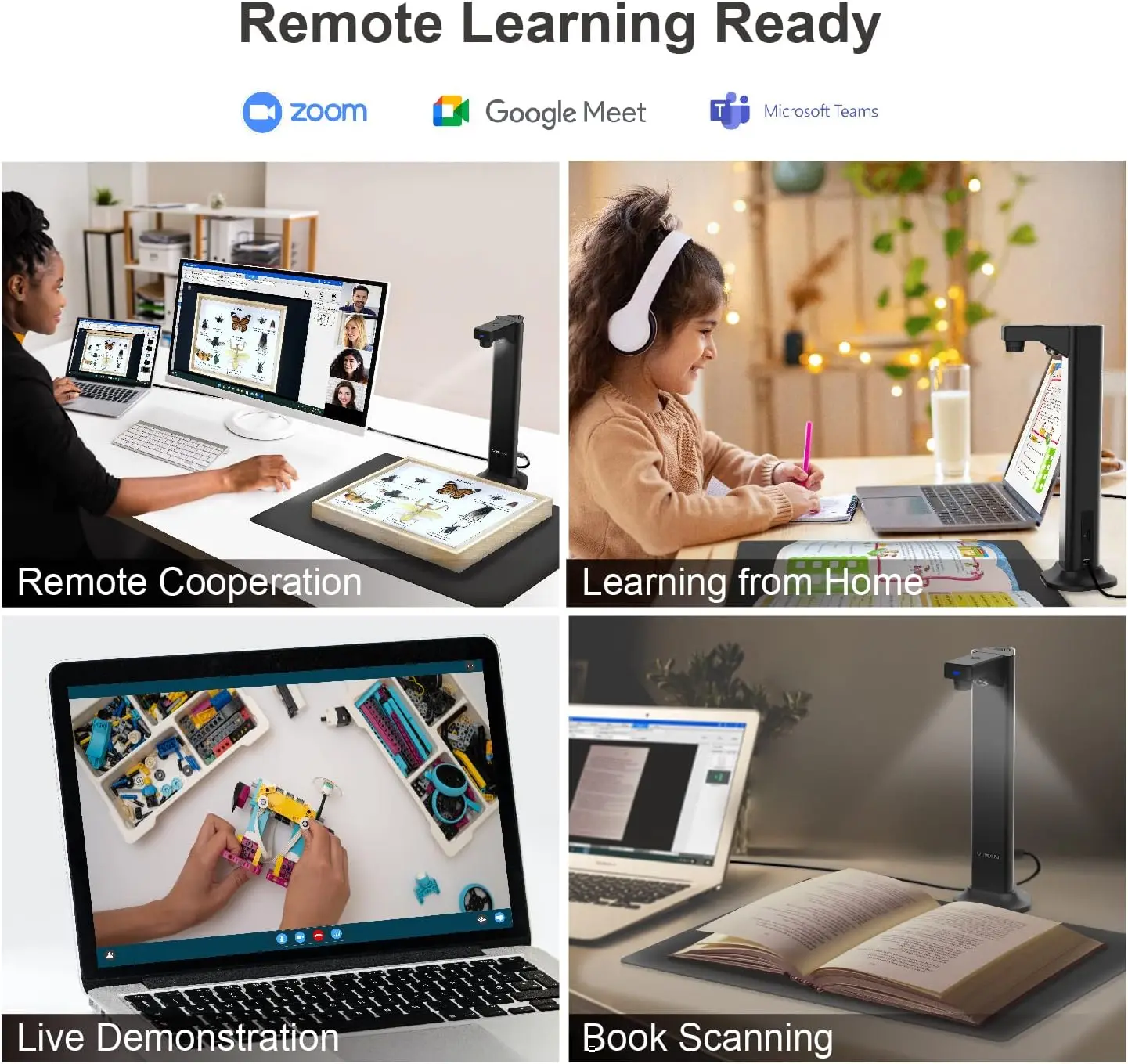 Der Scanner ist UVC/UAC-kompatibel und eignet sich daher optimal für den Fernunterricht oder Videokonferenzen über Plattformen wie Zoom, Google Meet oder Microsoft Teams. Physische Objekte und Dokumente können in Echtzeit präsentiert werden, was den Unterricht oder Meetings interaktiver gestaltet.