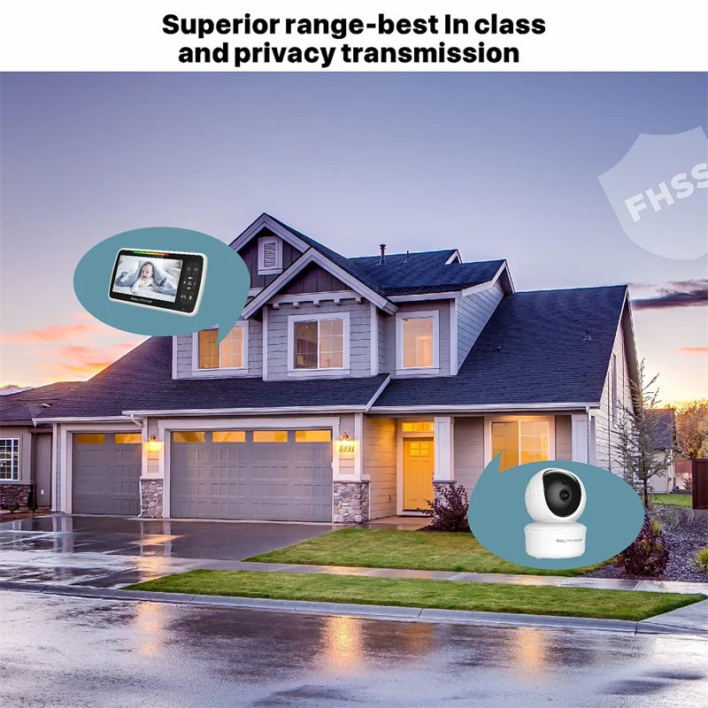 Das Babyphone ist tragbar, energiesparend und mit einem wiederaufladbaren 3000mAh Akku ausgestattet. Es arbeitet über eine sichere 2.4G drahtlose Verbindung mit einer Reichweite von 100–200 Metern. Geeignet für EU-, US-, AU- und UK-Stecker.