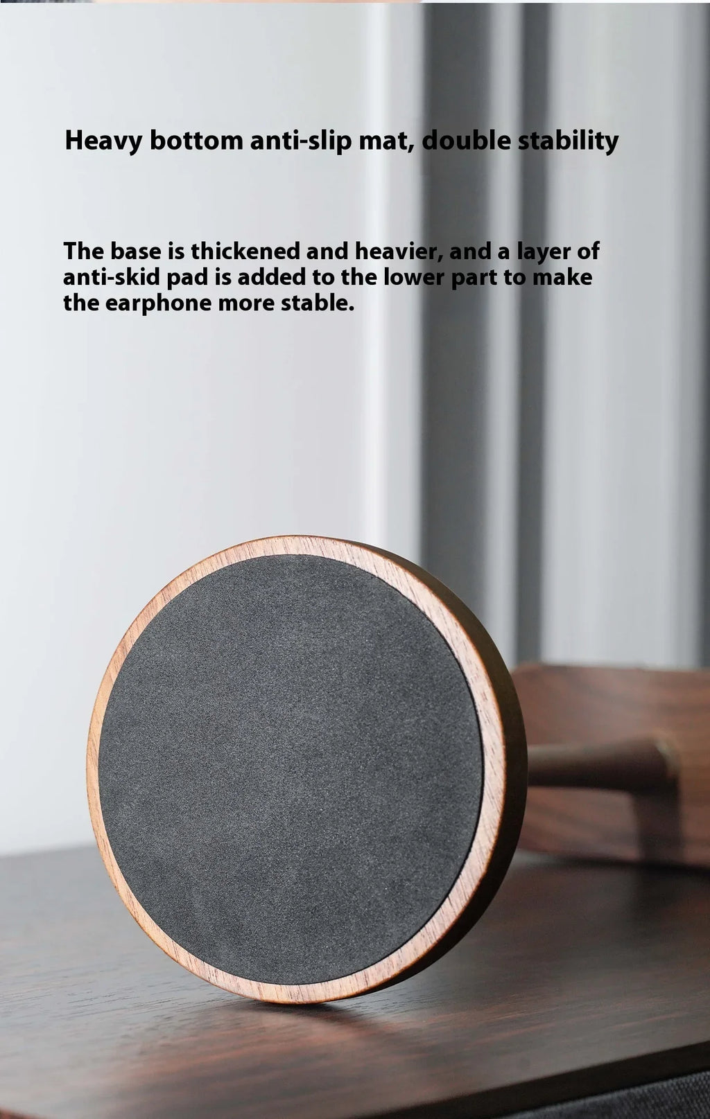 Im Lieferumfang enthalten ist ein Kopfhörerhalter aus Walnussholz, sofort einsatzbereit. Perfekt für Nutzer, die Ordnung, Schutz und stilvolles Design auf ihrem Schreibtisch verbinden möchten.