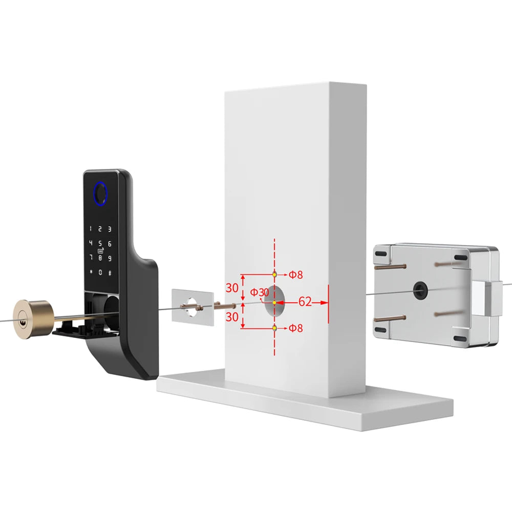 Dieses smarte Schloss lässt sich bequem per Fingerabdruck, Zahlencode, IC-Karte, Fernbedienung oder über die Tuya App (Bluetooth & WLAN) entsperren. Es eignet sich für Türstärken von 20–65 mm und kann an Holz-, Stahl-, Eisen- und Edelstahl-Türen installiert werden.