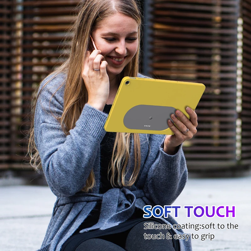 Die Hülle liegt angenehm in der Hand und bewahrt das schlanke Design des Tablets, ohne aufzutragen. Sie schützt das Gerät zuverlässig vor alltäglichen Schäden und verleiht ihm gleichzeitig eine moderne und elegante Optik.