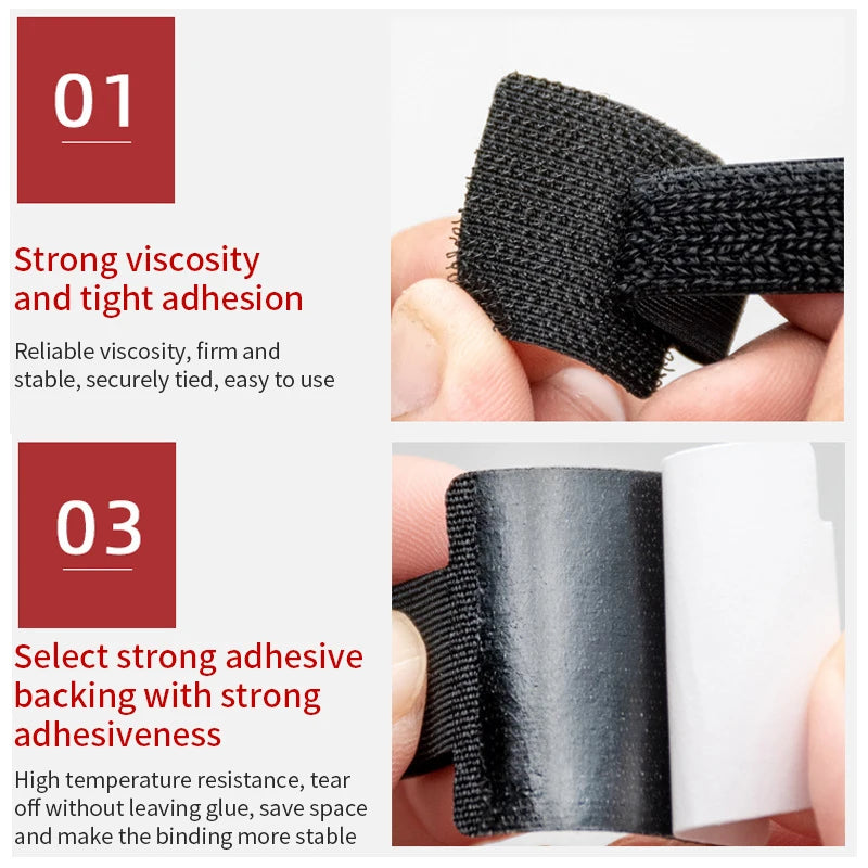 Die verstellbaren Klettverschlüsse ermöglichen eine einfache Anpassung an unterschiedliche Kabelstärken oder Bündelgrößen. Durch die wiederverwendbare Funktion können die Bänder mehrfach verwendet werden, ohne an Haftung oder Stabilität zu verlieren. Das schlichte Design sorgt für eine saubere Optik und erleichtert die Organisation von Kabeln auf Schreibtischen, in Schränken oder beim Transport.