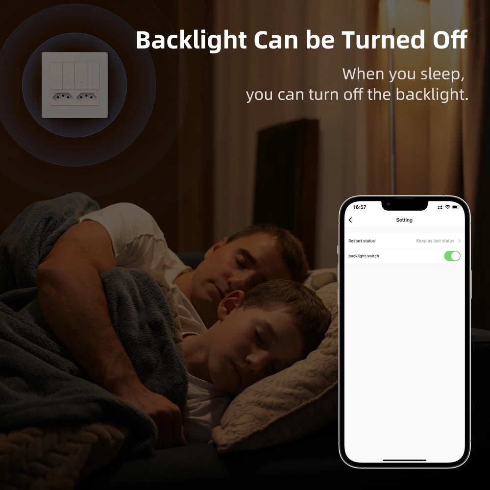 Dank der benutzerfreundlichen Installation lässt sich der Schalter einfach einbauen und bedienen. Die Hintergrundbeleuchtung kann bei Bedarf ausgeschaltet werden, ideal für Schlafzimmer und ruhige Räume. Mit der Timer-Funktion planen Sie das automatische Ein- und Ausschalten von Geräten, um Energie zu sparen und Komfort zu erhöhen.