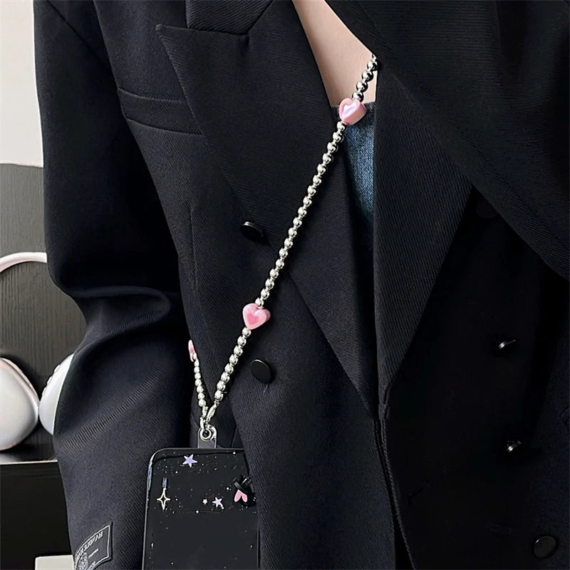 Y2K Herz Handykette Farbverlauf mit Metallarmband
