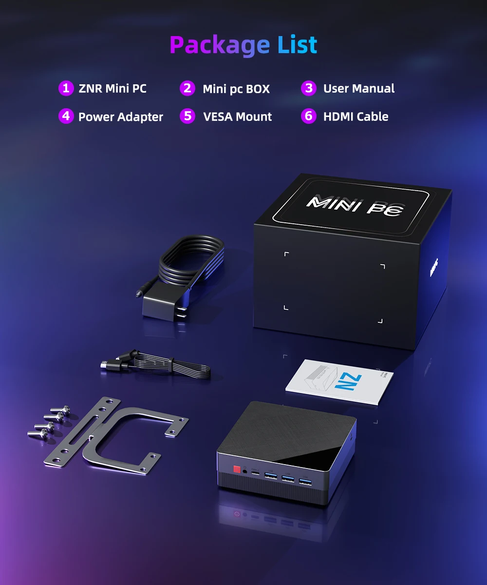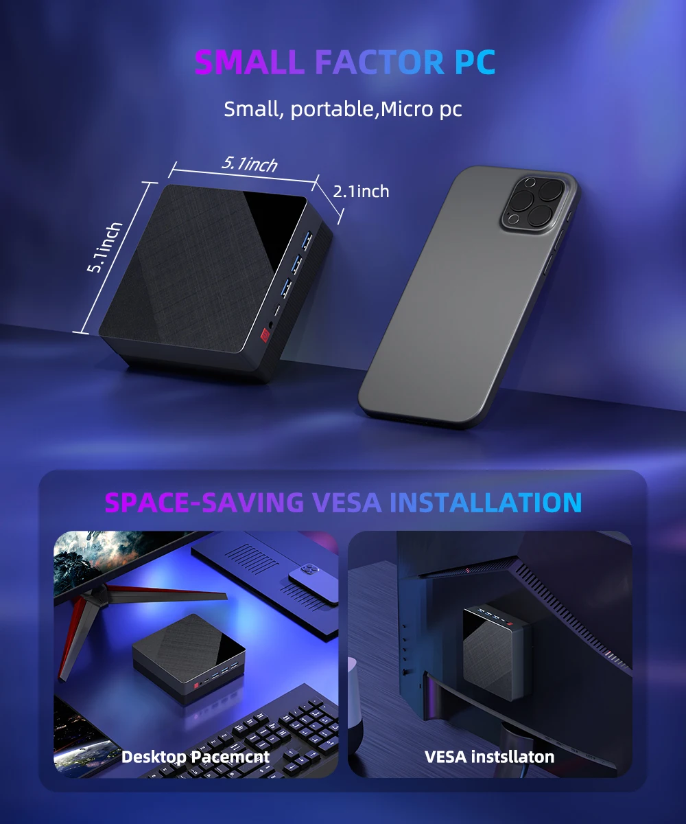 Dieser Mini-PC unterstützt Windows 11 und ist kompatibel mit verschiedenen Betriebssystemen, sodass er flexibel in unterschiedlichen Umgebungen eingesetzt werden kann. Er eignet sich perfekt als leistungsstarke Desktop-Alternative für Büro, Home-Office, Medienwiedergabe oder als kompakter Gaming-PC.